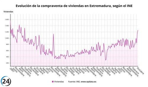 Incremento del 35,8% en ventas de viviendas en Extremadura en octubre, aunque menor que la media nacional.