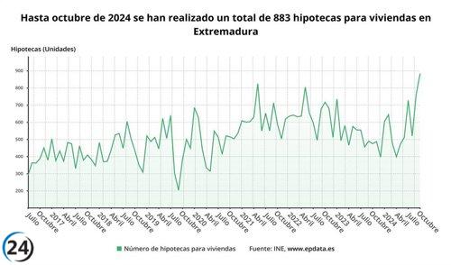 "Extremadura registra un aumento del 86,3% en la firma de hipotecas en octubre, manteniendo una racha de cuatro meses en alza."