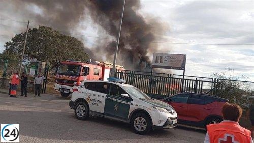 Medios se mobilizan para apagar incendio en fábrica de corcho en San Vicente de Alcántara.